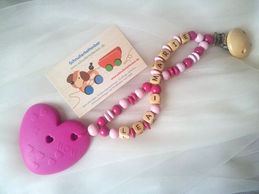 Kleiner Tipp: kurz in den Kühlschrank gelegt, sind die Silikonanhänger ein absolutes Wundermittel gegen schmerzendes Zahnfleisch ;-)